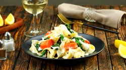 Il est vrai que si l’on compare les plats faits maison et trouvés au rayon traiteur ou surgelés la différence est immense. Et pour la plupart, ça ne prend pas beaucoup plus de temps de les réchauffer que de les préparer et donc, manger mieux. Ça permet en plus de contrôler les quantités exorbitantes de sel et sucre contenues dans les préparations industrielles. Faites une première expérience du frais avec ces pâtes crémeuses au saumon et épinards.