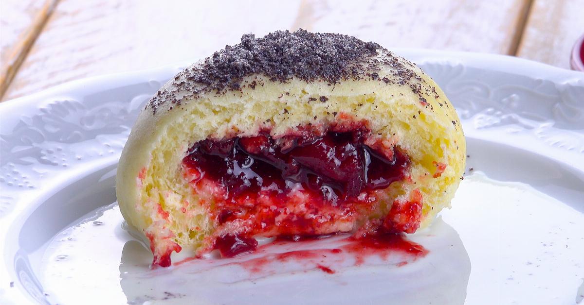 • Divisez la pâte en 6 parties égales puis façonnez les portions en forme de rond, avec les mains. Mettez une cuillère à café de confiture de prunes au milieu de chaque rond de pâte puis formez une boule avec les mains. Couvrez les boules avec un torchon et laissez reposer 15 minutes.
