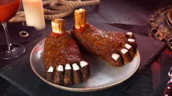 - Avec un couteau, formez les "orteils" et enfournez la plaque à pâtisserie pendant 60 minutes.