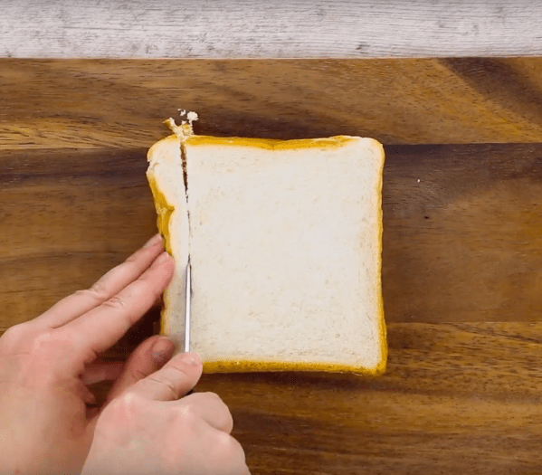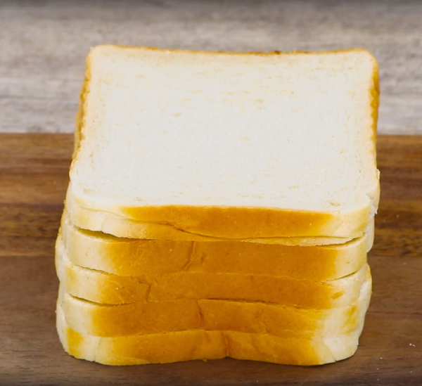 - Empilez les tranches de pain de mie les unes sur les autres et faites chauffer votre four à 220°C.