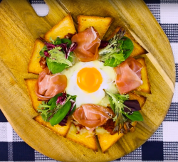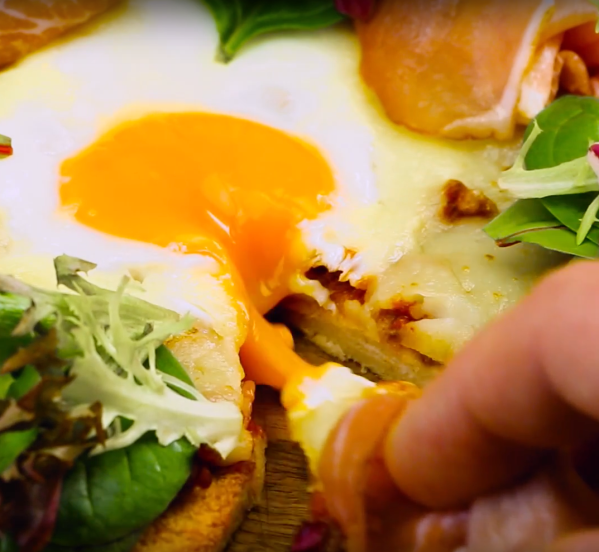 - Avec attention, déposez le jaune d’un œuf au centre de la couronne.