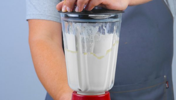 - Mettez l'eau, le lait, l'huile végétale, l'œuf, le miel, la farine, la levure et le sel dans un mixeur et mélangez le tout pendant environ 1 minute sur le réglage le plus élevé.