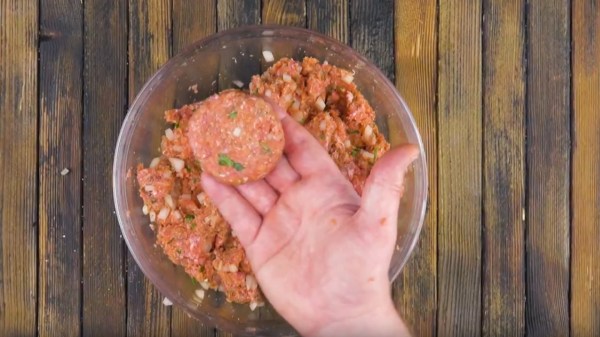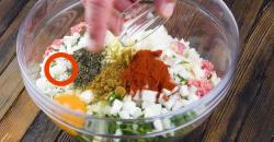 - Mélangez la viande hachée avec la chapelure, le persil frais, un oignon coupé en dés, l'œuf, l'ail finement haché et les épices. Une fois la masse bien malaxée, formez de petites boules plates.