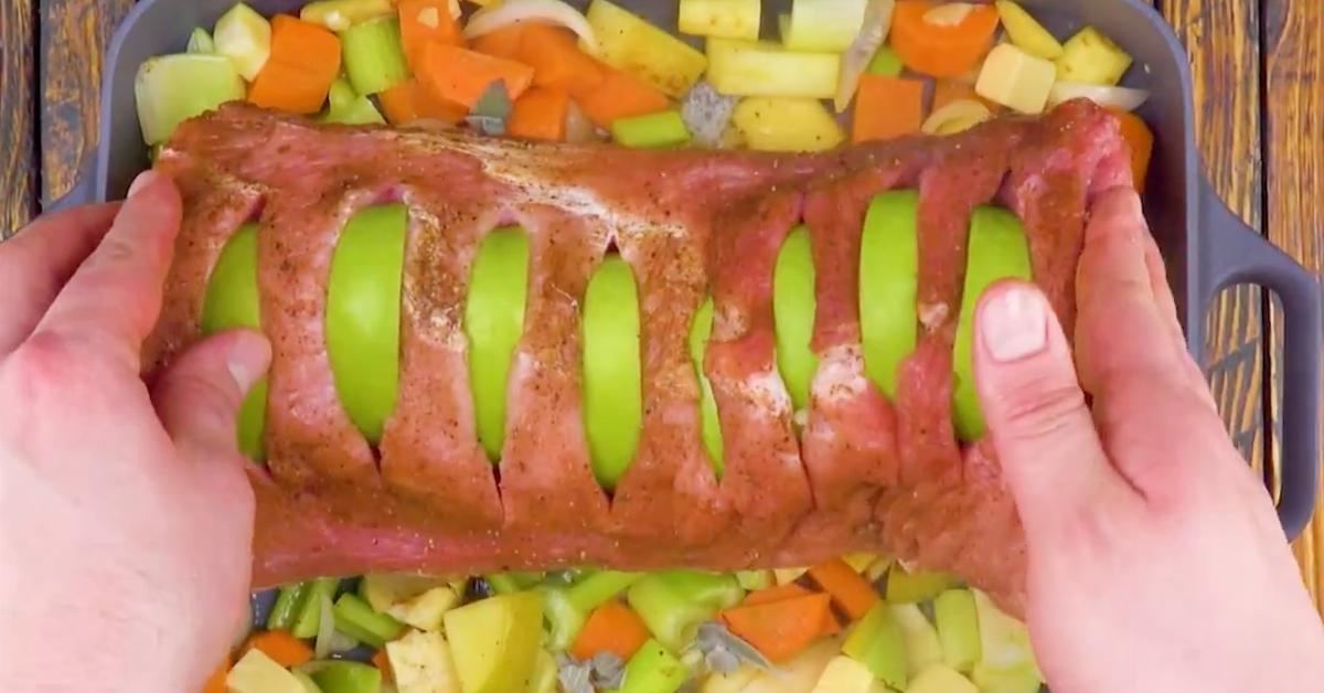 Un rôti de porc au printemps ou en été n’est pas envisageable ? Qu’est-ce que vous diriez d’une pièce de porc parfumée à la pomme, accompagnée de légumes rôtis et d’un riz savoureux ? Plutôt tentant, non ? Allez, suivez le guide :