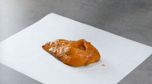 - Sortez le poulet de la marinade. Placez chaque blanc de poulet sur un morceau de papier sulfurisé ; chaque morceau de papier sulfurisé doit être assez grand pour y envelopper facilement le poulet.