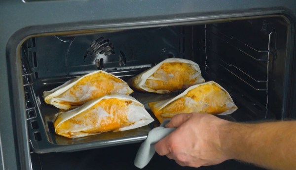 - Enveloppez chaque blanc de poulet dans son papier sulfurisé et enfournez-les pendant 20 minutes à 200 °C.