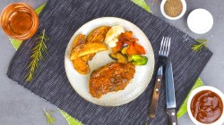 Le poulet est super juteux et croustillant et grâce à la marinade, les légumes et les pommes de terre sont aussi un vrai régal. Essayez immédiatement cette recette et voyez par vous-même. Vous n’avez jamais mangé du poulet cuit au four comme celui-ci ! Bon Ap’ !