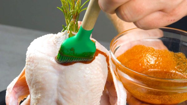 - Mélangez 3 cuillères à soupe d'huile d'olive avec les différentes épices, et badigeonnez entièrement le poulet avec.