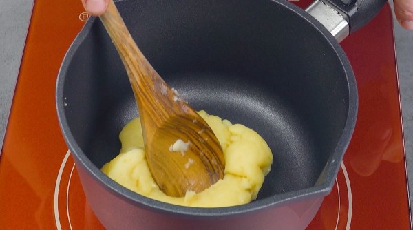 - Mélangez maintenant la purée de pommes de terre avec la pâte à choux et mettez le mélange dans une poche à douille.
