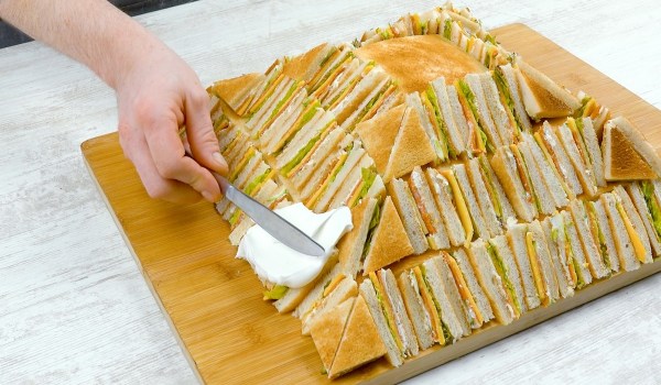 Qui aurait cru qu’il était possible de construire une pyramide aussi gigantesque avec du fromage frais, quelques sandwichs et du cheddar ? Avec cette création, vous allez pousser votre prochain buffet à son paroxysme ! Bon Ap’ !
