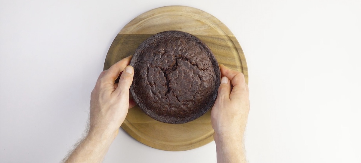 1) Préparez d’abord le gâteau au chocolat : mélangez tous les ingrédients ensemble. Versez la pâte dans un moule à charnière graissé (env. 20 cm de diamètre) et enfournez à 180 °C pendant 60 minutes. Laissez ensuite refroidir complètement.