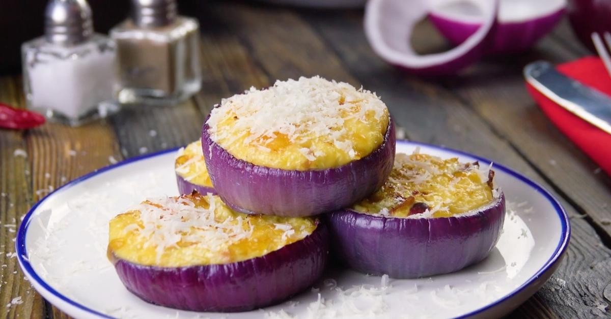 - 1.1.) Faites revenir 5 tranches de bacon dans une poêle jusqu'à ce qu'elles soient croustillantes. Ensuite, coupez-les en petits morceaux et versez-les dans un saladier. Coupez le piment en petits morceaux et ajoutez-les au bacon. Râpez maintenant le chou-fleur et le cheddar. Enfin, ajoutez 4 oeufs, le lait, le sel et le poivre. Mélangez bien à l'aide d'une fourchette.1.2.) Coupez un oignon rouge en deux et séparez les rondelles. Déposez les plus grosses dans une poêle.1.3.) Déposez une cuillerée du mélange d'oeufs dans chaque rondelle d'oignon et faites revenir le tout brièvement en vous assurant que rien ne s'écoule. Placez un couvercle sur la poêle et laissez cuire pendant environ 20 minutes à feu doux. Enfin, saupoudrez un peu de parmesan râpé sur le dessus.