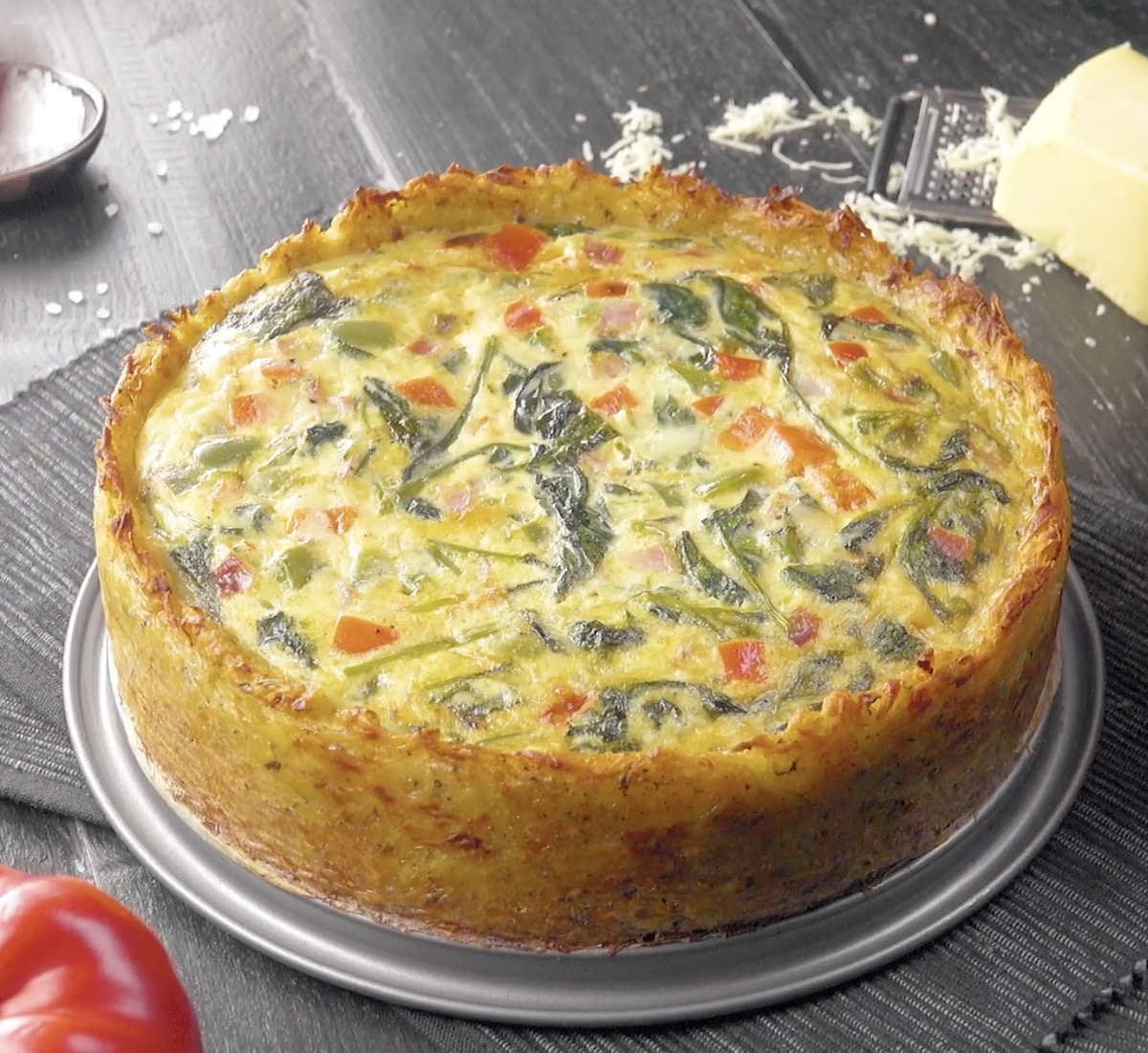 Quiche de pommes de terre aux légumes et aux épinards