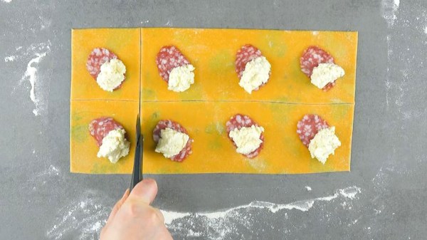 Raviolis façon pizza au salami et à la mozzarella