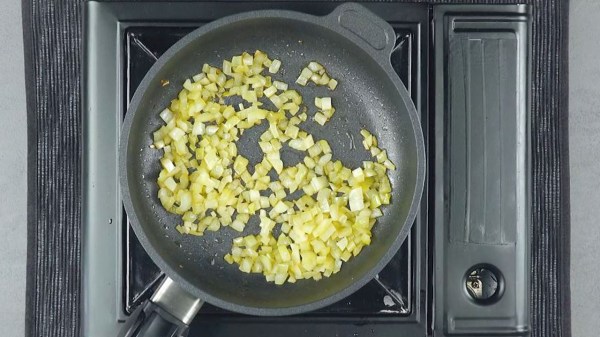 - Coupez l'oignon et l'ail en cubes et faites-les frire dans une poêle avec un peu d'huile. Embrochez les tomates sur une brochette et rôtissez-les au-dessus du feu de la gazinière. Mettez les tomates dans un mixeur avec les oignons frits et les herbes fraîches et mixez le tout.