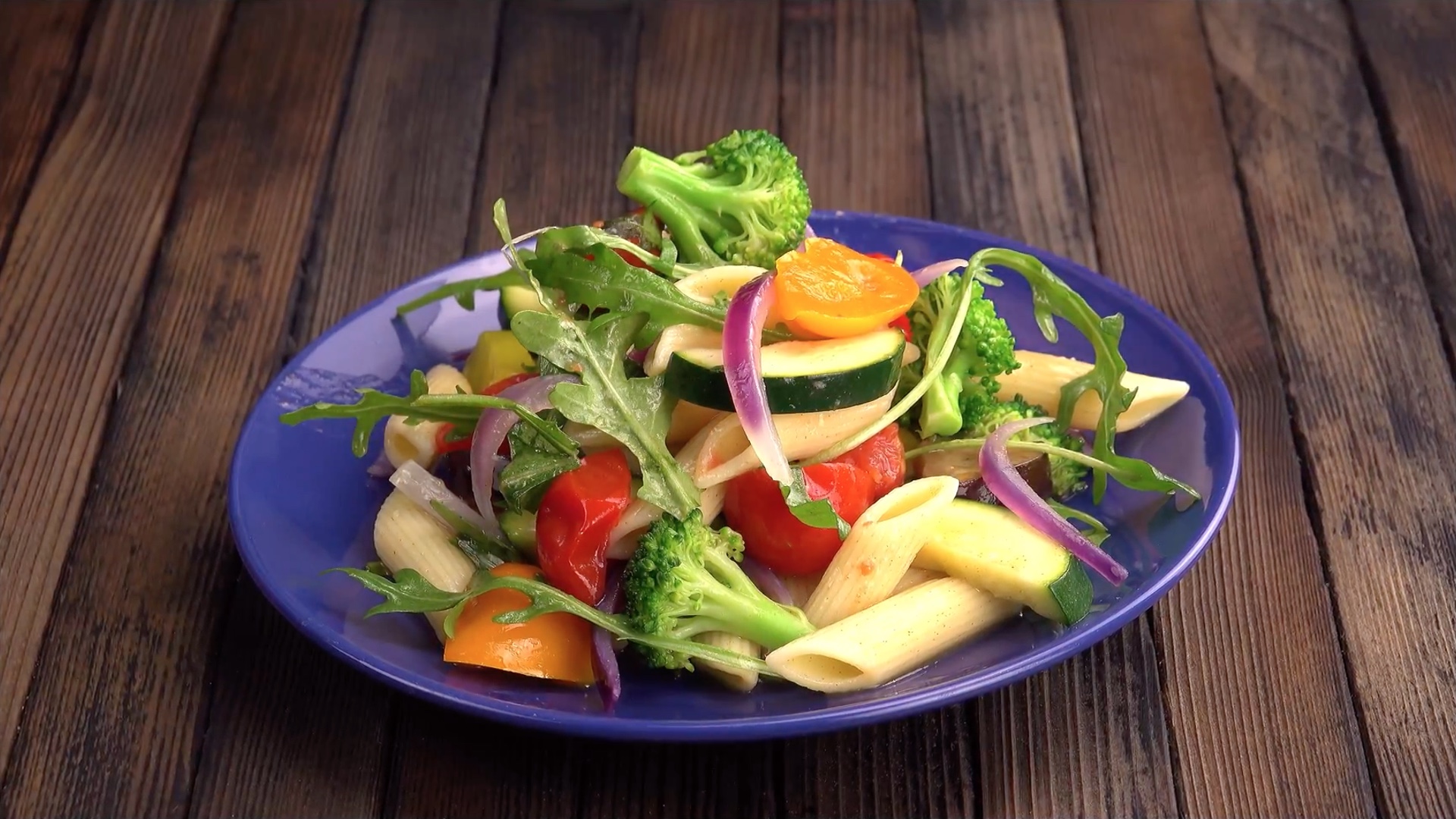- Mélangez les pâtes avec les légumes et laissez le tout mijoter encore quelques minutes avant d’ajouter la roquette.