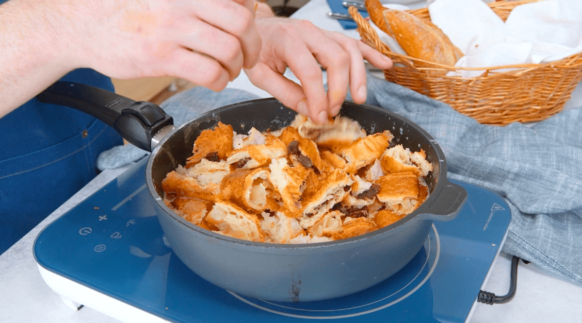 - 500 g de restes de petits pains sucrés (par ex. croissants, petits pains au chocolat, petits pains à la cannelle, pains aux raisins)