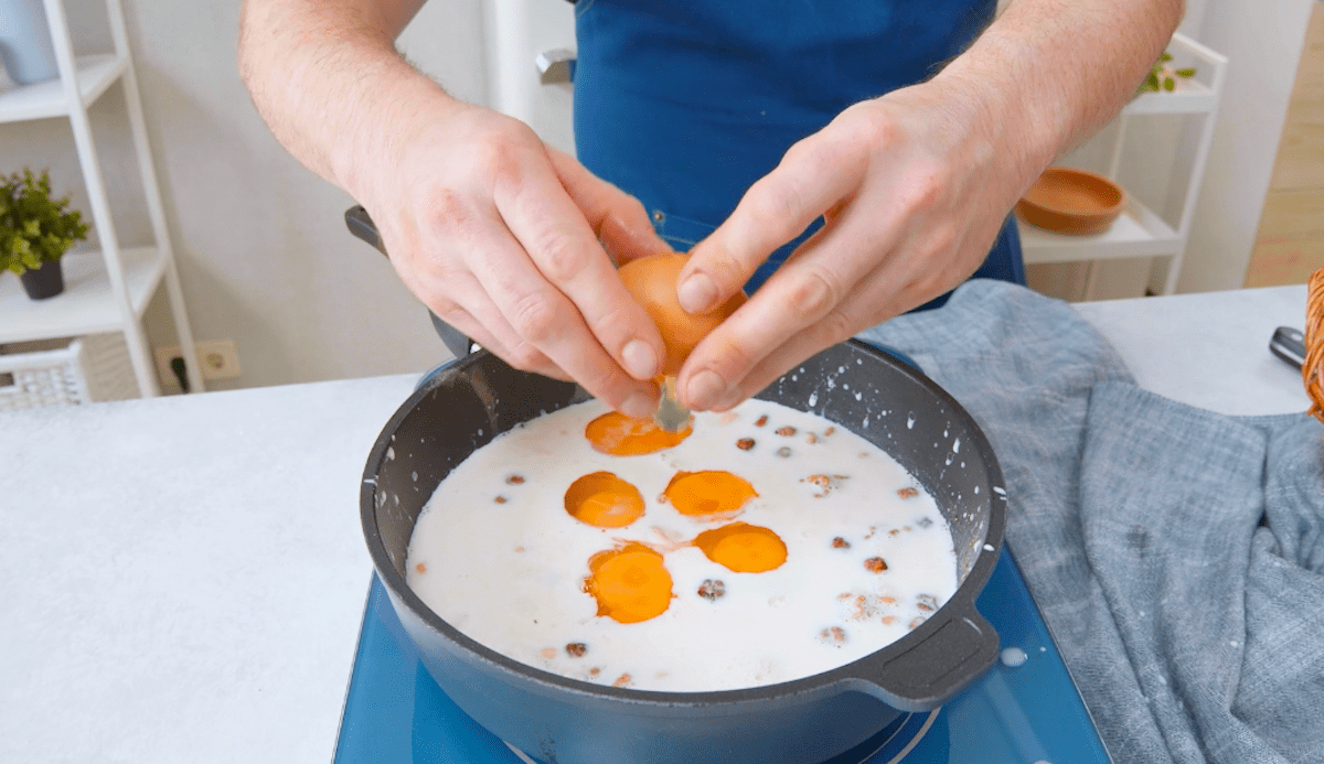 Astuce : retirez la casserole du feu juste avant d’ajouter les œufs afin qu’ils ne commencent pas à cuire tout de suite.