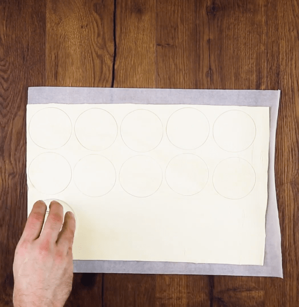 • Étalez la pâte feuilletée sur le plan de travail et utilisez un verre pour couper le plus de cercles possible.