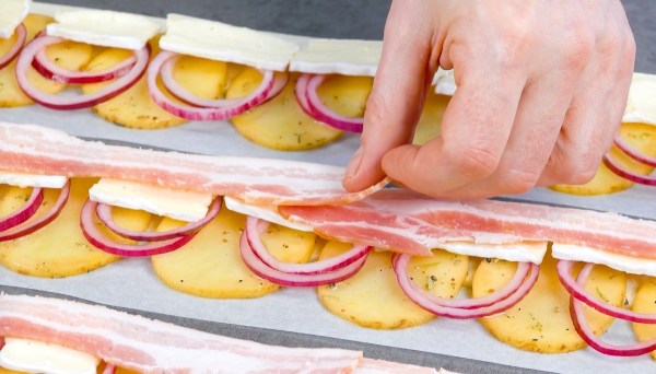 Rose de Pommes de Terre Farcie au Brie, Bacon et Oignons