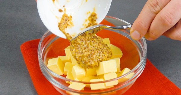 - Mélangez le beurre avec les cranberries, les dés d'oignon et la moutarde et réservez.