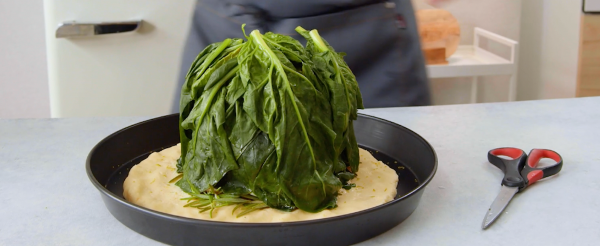 - Faites chauffer une grande casserole d'eau et plongez-y les feuilles d'épinards pendant 5 secondes. Secouez les épinards pour les sécher et enrobez le roulé de saumon avec.