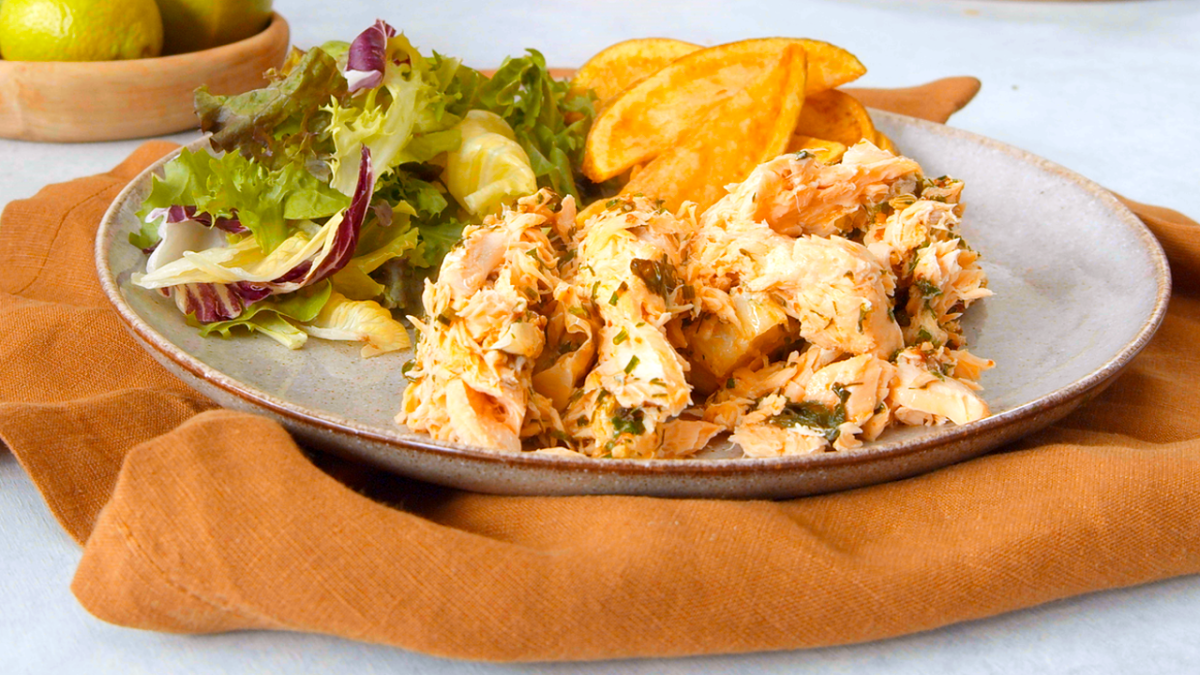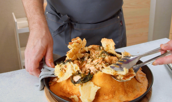 - Retirez délicatement le saumon et les épinards de la croûte de sel. Servez avec des pommes de terre et de la salade.