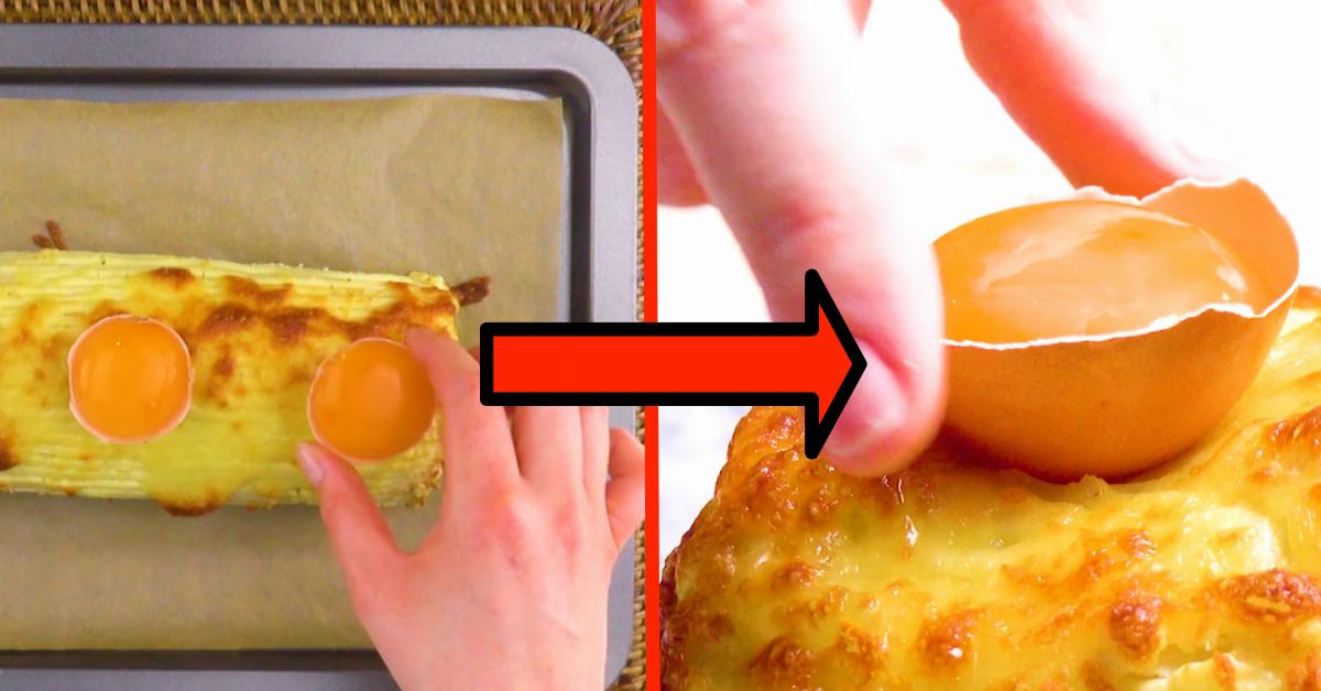 - Sortez le plat du four et placez les jaunes d'œufs (toujours dans leur coquille) sur le rouleau et enfournez à nouveau à 200 °C pendant 5 minutes.