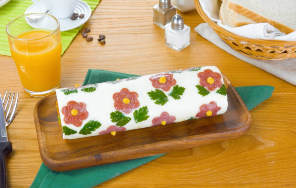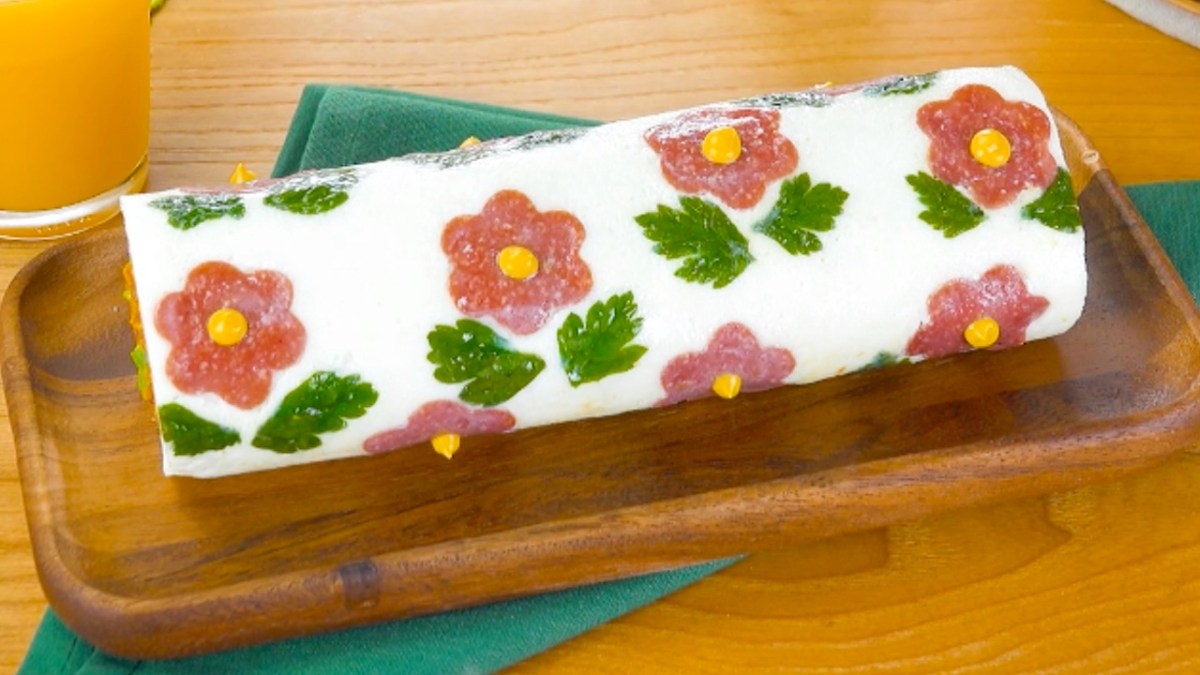 Ce rouleau de printemps est une véritable œuvre d’art, tant sur le plan visuel que gustatif ! Mais attention, ce n’est pas le rouleau de printemps habituel de la cuisine asiatique. Il s’agit plutôt d’un rouleau d’œufs juteux, c’est-à-dire d’une omelette remplie de jambon cuit, de poivrons et de fromage que l’on décore avec du salami et du persil, ce qui lui donne un aspect floral et printanier. Une excellente recette avec des œufs !