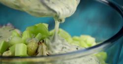 - Mélangez tous les ingrédients de la vinaigrette dans un saladier jusqu'à obtenir une sorte de crème épaisse.