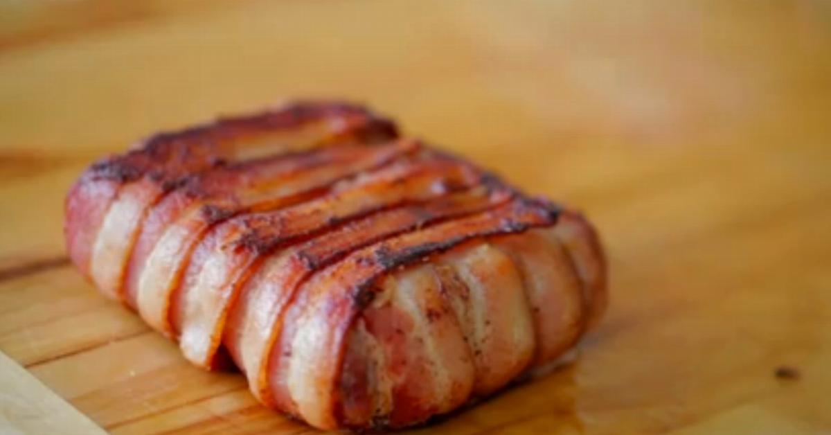 - Etalez quelques tranches de lard ou de jambon de campagne les unes à côté des autres et enveloppez votre sandwich avec. Répétez l’opération avec de nouvelles tranches de charcuterie pour fermer le côté encore à nu.