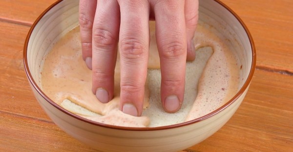 - Mélangez les oeufs et la crème avec le sel, le poivre et le paprika. Trempez les tranches de pain de mie les unes après les autres dans ce mélange. Égouttez-les brièvement lorsque vous les retirez.