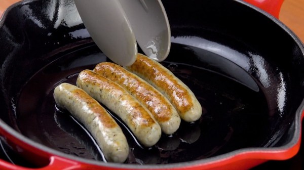 - Comme pour la première variante, mélangez les oeufs avec la crème et les épices. Trempez les huit tranches de pain de mie dans le liquide et égouttez-les brièvement. Faites-les revenir dans la poêle jusqu'à ce qu'elles soient dorées puis faites revenir les 24 saucisses.