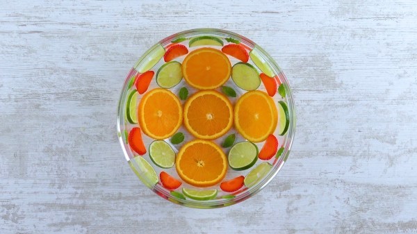 Une bonne sangria en été, c’est un peu comme un ciel sans nuages, le paradis ! On vous propose aujourd’hui une recette excessivement simple de sangria aux fruits avec une petite pointe d’originalité, tout se passe dans le récipient, regardez :