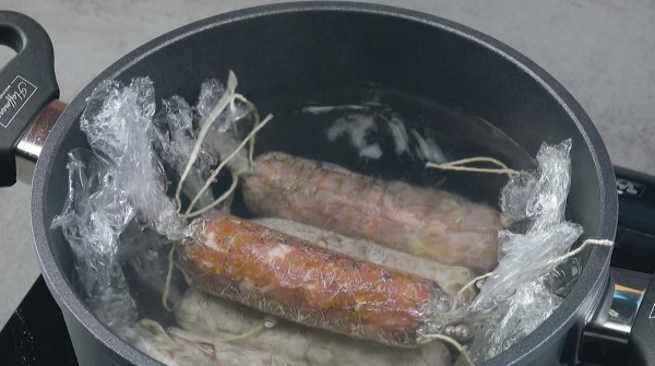 • Plongez toutes les saucisses emballées dans de l'eau bouillante et faites-les cuire pendant 8 à 10 minutes.