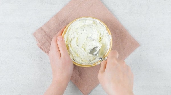 - Mélangez tous les ingrédients pour la garniture au fromage frais.