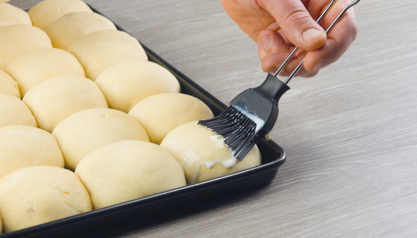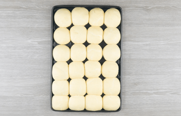- Transformez la pâte en 24 petites boules et placez-les sur une plaque à pâtisserie huilée. Recouvrez le plateau avec un chiffon et laissez la pâte lever pendant encore 30 minutes.