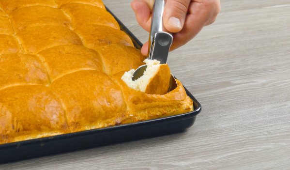 - À l'aide de la cuillère à glace, faites un creux dans les 24 pains ; retirez la pâte à chaque fois.