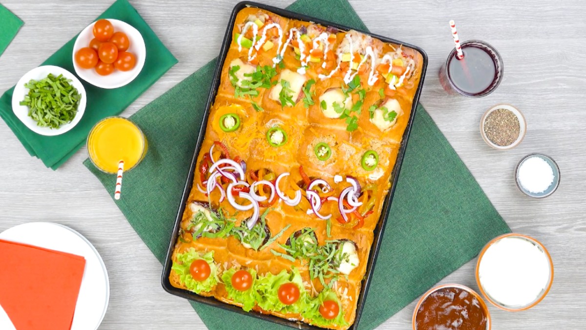 Nous avons la meilleure recette pour votre prochaine fête d’anniversaire ! Des petits pains farcis avec six garnitures différentes, dans un seul et même plat. Ces pains sont vraiment délicieux et garnis des meilleures combinaisons possibles. La viande hachée rencontre la sauce tomate et le parmesan, le poulet rencontre la sauce BBQ et la mozzarella, l’escalope rencontre le jambon cuit et l’edam. Un succès absolu, idéal pour les invités affamés.