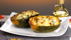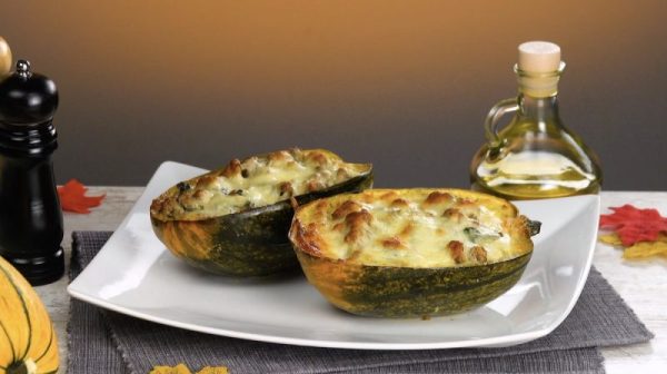 - Versez le mélange de viande hachée dans les moitiés de citrouille et saupoudrez de mozzarella. Enfin, enfournez le tout pendant 15 minutes à 175 °C, à chaleur tournante.