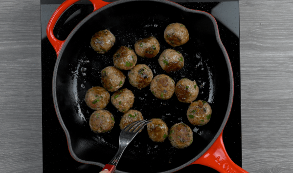 • Mélangez la viande hachée avec l'œuf, la chapelure, le sel, le poivre, l'ail et les herbes. Formez de petites boulettes de viande à partir du mélange de viande et faites-les frire dans de l'huile d'olive.
