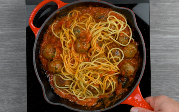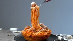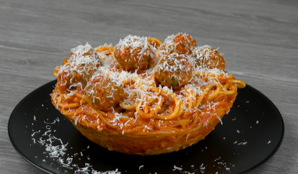 Les pâtes à la sauce tomate et aux boulettes de viande sont un basique de la gastronomie. Avec un bon parmesan et des herbes fraîches, les pâtes sont un véritable régal. Le couronnement de la recette suivante est une illusion d’optique créée par une astuce qui rend le tout encore plus excitant et étonnant, on vous montre :