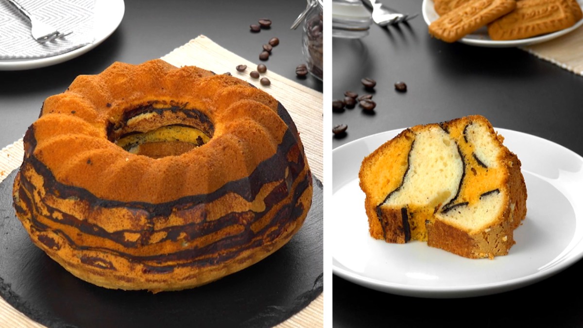 Vous voulez faire un gâteau rapide et simple qui attire tout de même l’attention ? Vous êtes au bon endroit. Il suffit d’avoir les ingrédients habituels pour un sponge cake et un peu de cacao en poudre. Avec la technique de superposition suivante, votre gâteau aura l’air d’un véritable chef-d’œuvre, regardez :