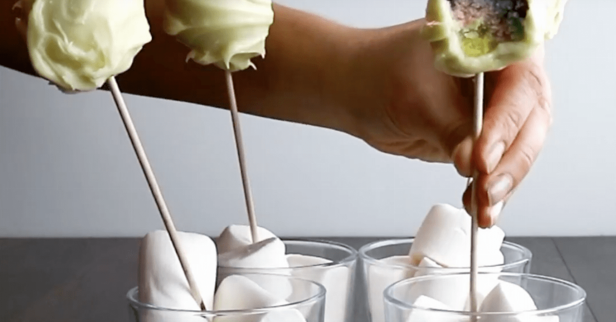 - Retirez le film plastique, plantez un bâton pour la déco et mettez au congélateur pendant 20 minutes. Trempez chaque boule colorée dans la mixture au chocolat blanc pour un enrobage délicieusement sucré. Il ne vous reste plus qu'à laisser sécher et à déguster !