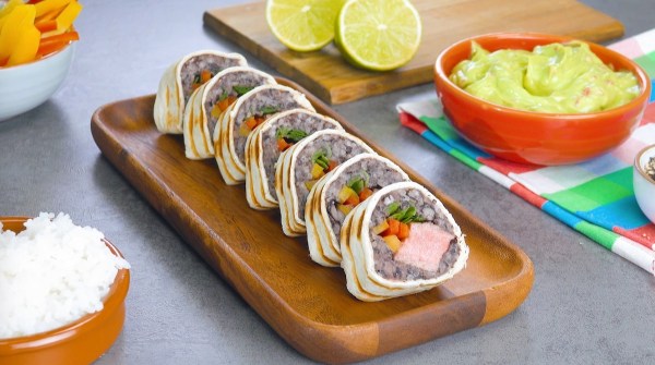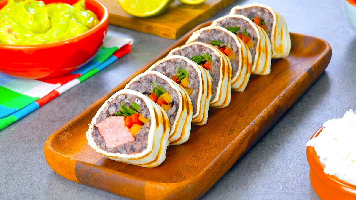 Au fait, ces sushis maison, composés de tortillas, de purée de haricots et de rumsteck, sont encore meilleurs avec du guacamole. Bon Ap’ !
