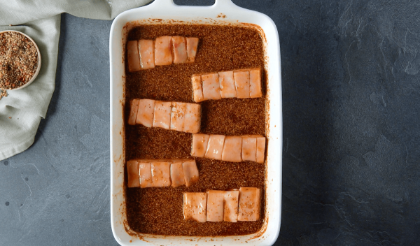 - Mélangez tous les ingrédients de la marinade Coca Cherry dans un grand plat à gratin. Coupez la poitrine de porc en morceaux et laissez mariner pendant 5 heures.