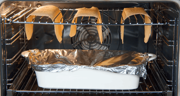 - Recouvrez le plat de papier d'aluminium et faites cuire la poitrine de porc pendant 60 minutes à 170 °C en mode convection. Suspendez les tortillas sur une grille et faites-les cuire 10 minutes.