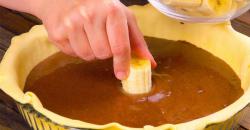 - Mettez la pâte brisée dans un plat à tarte puis versez la mixture au chocolat. Coupez les bananes en gros morceaux que vous déposez à la verticale dans la mixture au chocolat. Ajoutez les bonbons au caramel puis terminez par les morceaux de chocolat près du bord de la tarte.