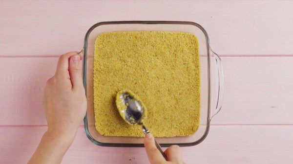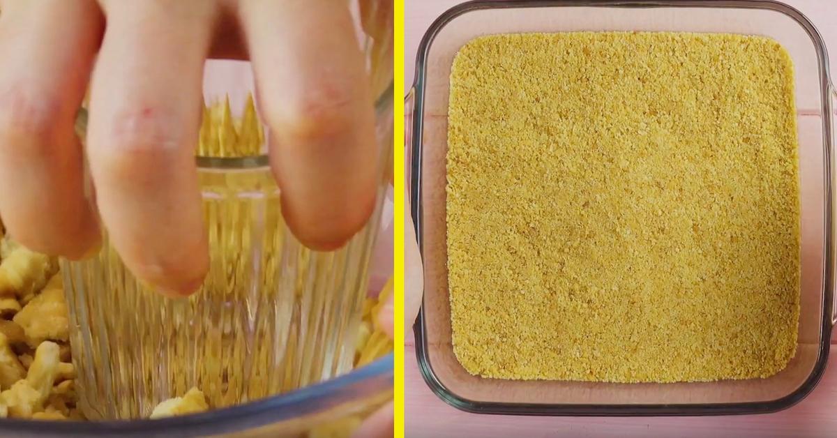 - Mettez les miettes dans un moule, lissez le tout et mettez au frais.
