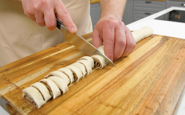 - Coupez les rouleaux en morceaux d'environ 1 cm de large, de manière à obtenir environ 35-40 escargots de pâte.